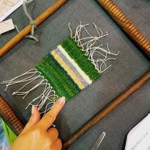 1つ目のワークショップは「木枠で織るキリムコースター」