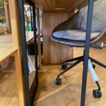 本体がチーク材、エッジ部分はビーチ材、脚がオーク材                                           と3種混合なのです!