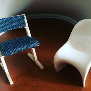 「パントンチェア」のミニチュアと、自分デザインの椅子の模型
