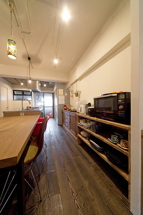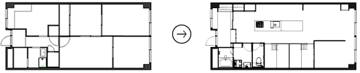 間取りは昔ながらの使いづらい細かく仕切られた3L・DK。狭い空間を有効活用するために、空間にメリハリを出すことでキッチンを中心に家族の空間にゆとりを持たせました。