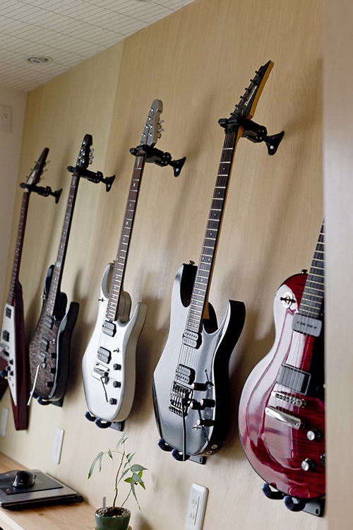 以前は北側の一室にこもって弾かれていた趣味のギターでしたが、工事後は南側のリビングの真裏、光注ぐ壁面が特等席となりました。