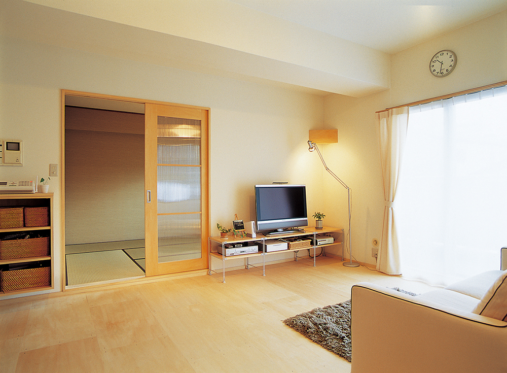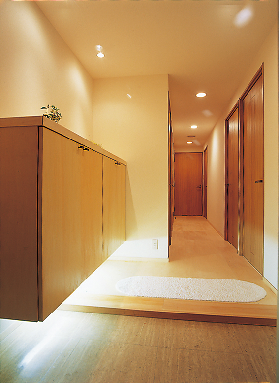 また、予算も重視されていたので、コストダウン+リサイクルもポイントでした。シナベニアはコストパフォーマンスがよく、ナチュラル感もかもしだせるので、お客様宅にぴったり。さらに、「使える物は使う」の精神で、状態が良い建具は取っ手だけ変更し、天板やシューズボックスは化粧直しでナチュラルにコーディネートしました。