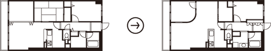 キッチンの位置はそのまま、上部の吊り戸棚や使わないキッチンカウンターを取り払い、開放的なオープンキッチンが誕生。キッチンの扉面だけ入れ替えることでコストダウンにも成功
