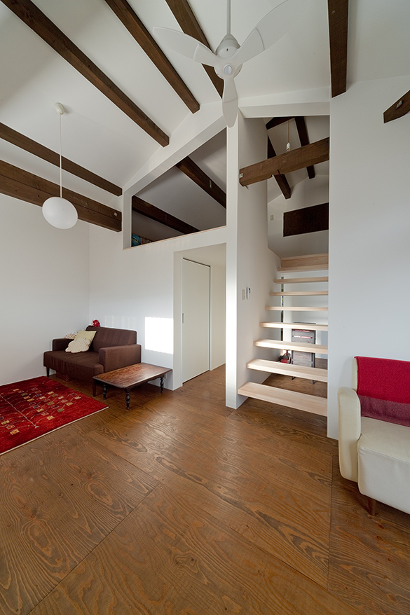 あけ放たれた小屋裏と新設のスキップフロア。