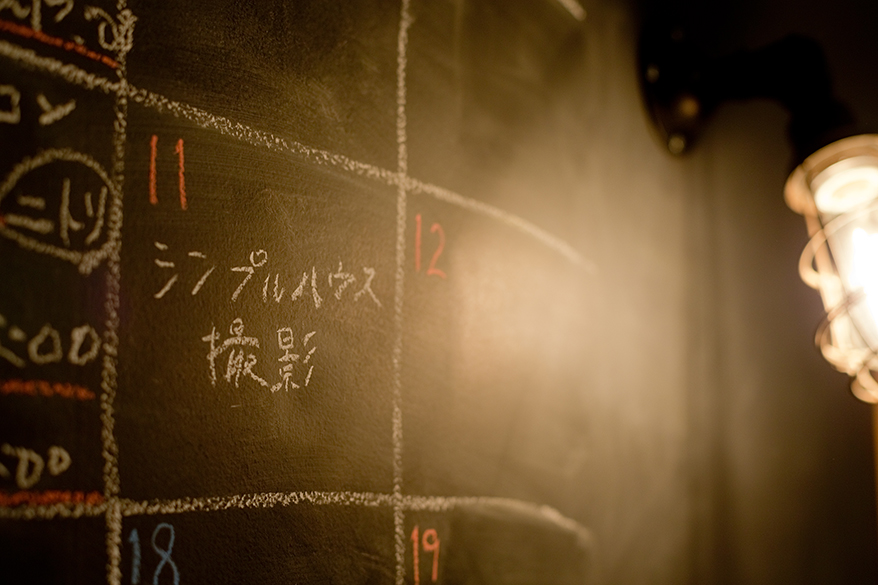実はプラン途中、奥さまの妊娠が発覚しました。そんな場合も慌てずに。ダイニングスペースだった部分を収納室に変更することで、将来の子供部屋を確保。子供室より壁面を凹ませることで、キッチンとほどよい距離感が生まれました。子供室の壁は針葉樹の板張り、収納室の壁はチョークボードを使うことで、なんだか楽しい感じ。「安い素材を使っているのに、こんなに面白くなるんやーとテンションあがりました!」とご主人。奥さまも「予算の関係であまり間取りは変えてないのに、ここまで変わるんやと驚きました!」。