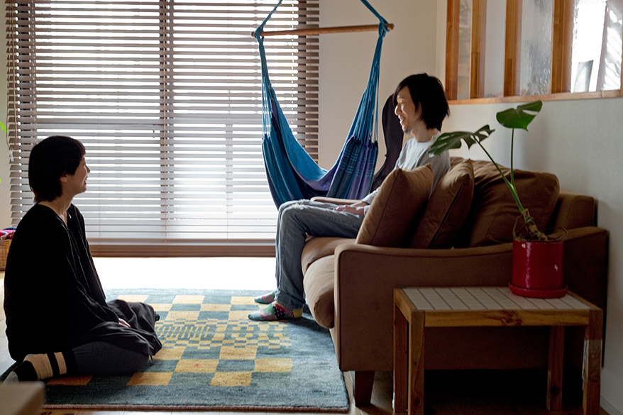 自宅でお仕事をするグラフィックデザイナーのおふたり。2LDKの賃貸時代は、ひと部屋は完全に物置状態、寝室にぎゅうぎゅうとデスク2つを詰め込み、すれ違うのもひと苦労、仕事の資料は隣のリビングの棚、扉はいつも開け放し、寝室とLDKを行ったり来たり。「家をワンルーム感覚で使っていたので、家=仕事。オンもオフもない状態で、外に行かないと休んだ気にならなかったですね」。