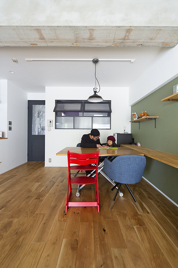 Aさんは、独身時代に購入した支払済みのマンションに住んでいましたが、子育て環境を考えて、買い替えを決意。シンプルハウスが中古紹介も、リノベもやっていると知り、「全部お願いできる!」と、大阪市内の物件探してもらいました。「シンプルハウスに打ち合わせに行った時、娘がキッズルームでずっと遊んでて。だからきっと、子供が楽しめる家ができるんだろうなと楽しみで」。