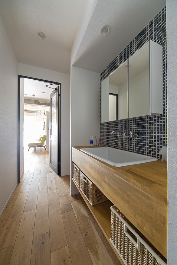 せせこましかった水廻りは、洗面台を廊下に出すアイデアで広々。「廊下に洗面?と思いましたが、すごく使いやすいです」