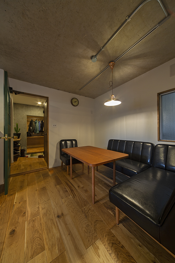 折角のコンクリート躯体を見せたい!しかし、モルタル床やコンクリート壁だらけで無骨すぎるのは…と、いい塩梅をN様と一緒に考えました。