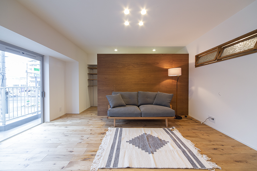 地下鉄鶴見緑地線・今福鶴見駅から徒歩1分の立地のよさ、心斎橋まで約15分とアクセスもいい。マンションでも2階なのでエレベーターを待ったりというジレンマもありません。利便性は非常に高い住戸であったが現地調査時から壁紙のカビを確認、真下がピロティ(エントランスホール)のため、床からの冷え込みも無視できない。そこで、「断熱性能」をテーマに大改修しました。