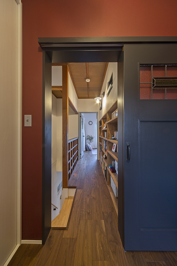 拘りポイントがたくさんありまして、ここでは書ききれませんが、特に2階の扉は、お二人が「これ使えませんか?」とステンドガラスをお見せ頂き、そのサイズに合わせてオリジナルで製作させて頂きました。今も、こんな感じで暮らしてます!とメールを頂くことが何より嬉しいです☆