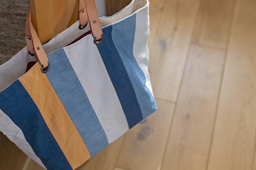 Y様邸のテーマカラーは、「青」。キッチンカウンターの色目は最後まで悩んだ記憶が、、ブルー一色だけではY様邸らしくないような…ということで思い出の石垣島の草木染めバッグを参考にさせていただきました。