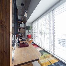 戸建てへの憧れもあり、一度は検討した住み替えです。「でも、娘の学校変わるのは避けたい」と、方向転換。住んでいる家を自分たち好みにオーダーメイドする、リノベーションを選択しました。共働きのYさん夫婦。朝早く夜遅いママは、郵便物がたまって書類が散乱するのが悩みの種でした。「書類を整理できるスペースがあればいいね」。その言葉から、SOHOをつくることになりました。まだ、コロナ禍になる前のお話です。そして面白いのが、SOHOをLDKの一番気持ちのいい窓側に配置したこと。掃き出し窓ではなかったのがポイントで、人が出入りする心配もありません。SOHOとLDKの間には、ガラス張りのパーテーション。石垣島の想い出カラーをアクセントにしたキッチンカウンターとともに、住まいの顔になりました。バルコニーからの光がガラスを通り抜ける、その光のグラデーションが、本当にキレイです。LDKと娘ちゃんの部屋は広さのバランスに悩みましたが、子供部屋にロフトをつくることで解決。収納に困っていたキャンプ道具のために、玄関横に大きなWICもつくりました。リノベとは断捨離です。最初に「モノが多いですねー。4割は捨てましょう」と提案されたこともあり、洋服と靴は半分処分。「動線もモノもすっきり。コンパクトで暮らしやすくなりました」とママ。「でもね。まただんだんと、洋服が増えてきてるんですー」と笑います。