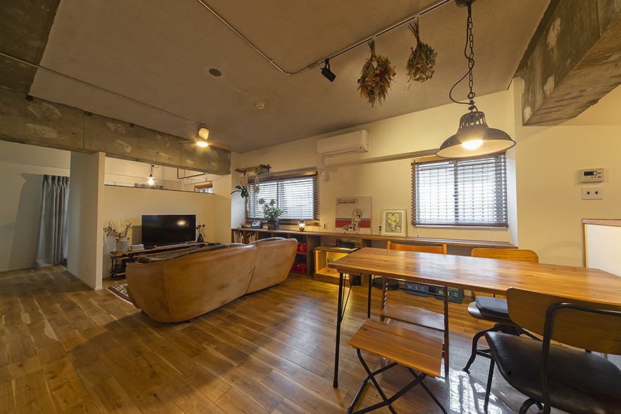 ヴィンテージマンションのリノベーションってやっぱりカッコいいな~っと思わせて頂けるT様邸。マンションは間もなく築50年になりますが、管理状態も良く、まだまだ渋みに磨きをかけていけます。内部は土間やウォークスルークロゼットもある現代的な暮らしが出来る間取り☆元気なエイト君が縦横無尽に走り回っております♪