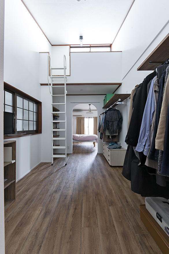 独立した3部屋を開口部でつないだ2階は中央にWICを配置しました。ロフトに壁をつけて、ハシゴを設置することで1部屋プラス。屋根にも断熱材を入れ、1階と2階の掃き出し窓にインナーサッシを取り付けることで断熱効果がアップします